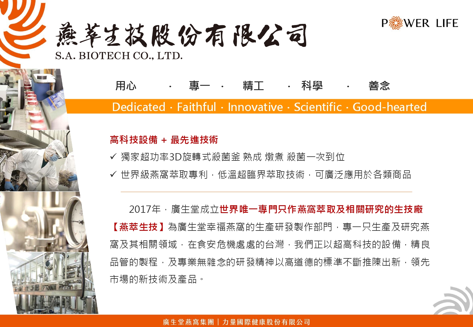 同時秉持者廣生堂集團信念:【用心.專一.精工.科學.善念】